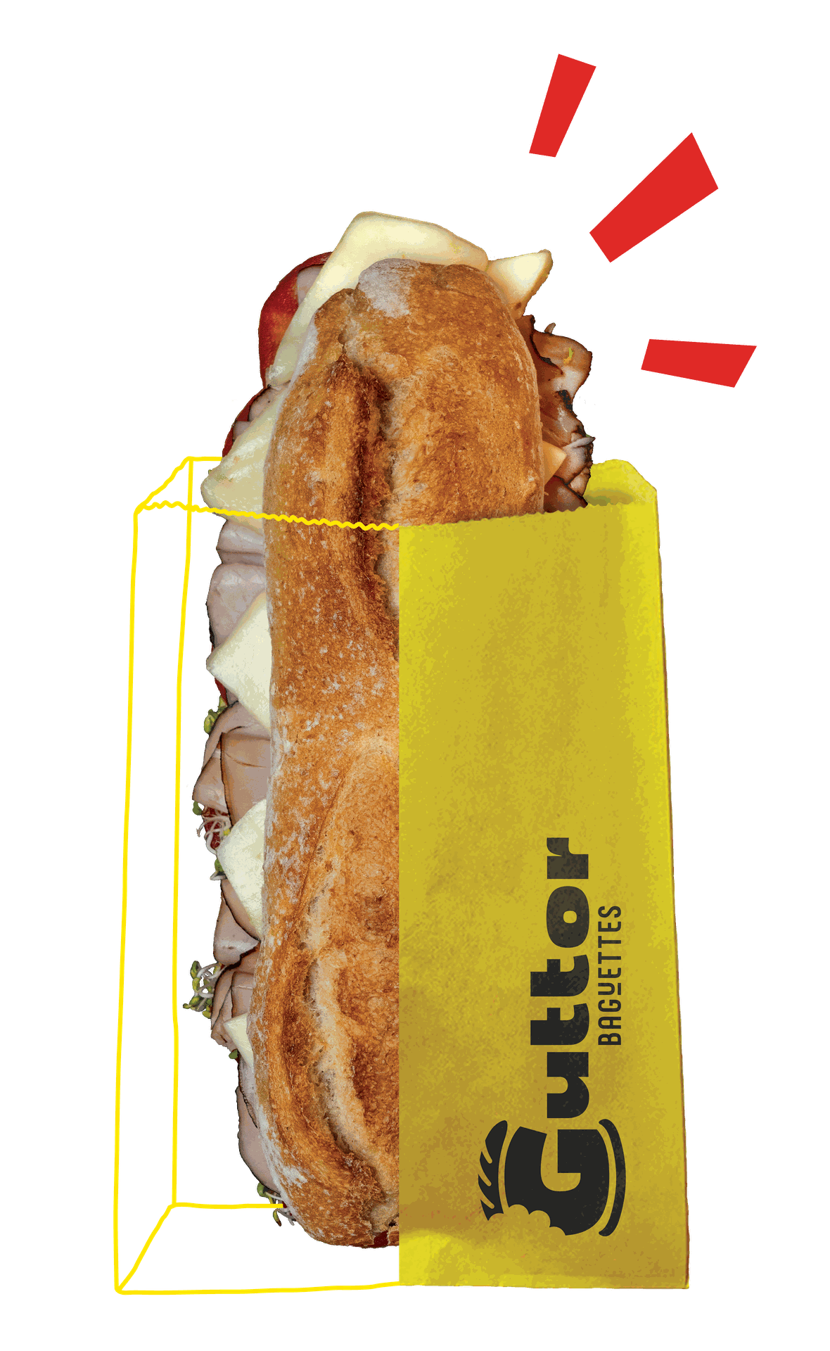 Pan de Masa Madre, Charcutería de Alta Calidad, Quesos Artesanales, Vegetales frescos/Mezcla de lechugas orgánicas y variedad de aderezos. Todo en un solo Baguette qué resume lo mejor de GUTTOR: sabor, calidad y autenticidad en cada bocado.