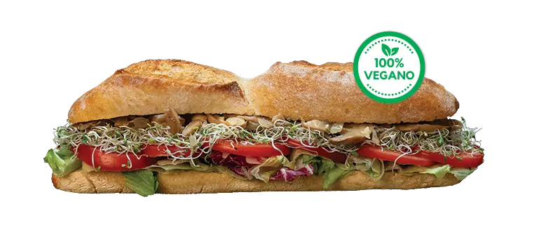 Baguette de masa madre con champiñones, cebolla, espinacas, tomatina y vegetales frescos.